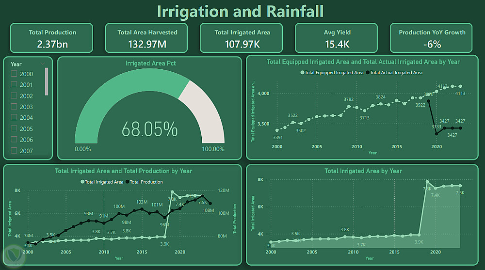 لوحة تحكم تفاعلية لتحليل الإنتاج الزراعي ومؤشرات الاستدامة