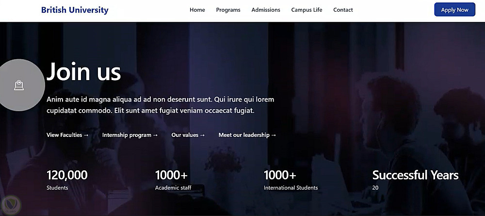 تم تصميم وتطوير صفحة هبوط (Landing Page) حديثة لموقع جامعي، تهدف إلى تقديم تجربة مستخدم مميزة وجذب الطلاب المحتملين. ركزت الصفحة على عرض المعلومات الأساسية مثل البرامج الدراسية، مميزات الجامعة، وآلية التقديم بشكل واضح ومنظم.