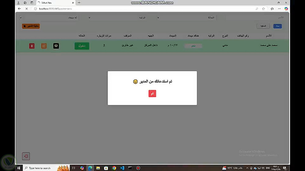 صفحة الكترونيه لإدارة مقابلات المدير