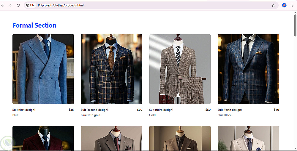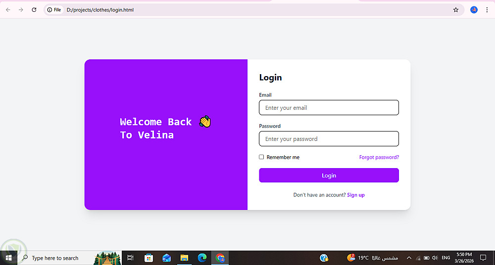 موقع إلكتروني لبيع الملابس (Fashion E-commerce Website) تم تصميمه وتطويره باستخدام HTML وTailwind CSS، يهدف إلى عرض المنتجات بطريقة عصرية وجذابة. يتضمن الموقع صفحة رئيسية (Landing Page) بتصميم حديث، وصفحة تسجيل دخول (Login)، بالإضافة إلى صفحة عرض المنتجات مقسمة إلى أقسام مثل Formal وCasual لتسهيل التصفح.