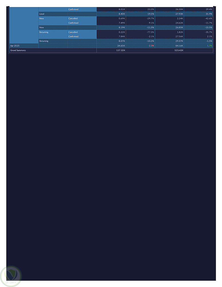 تحليل التغيرات الشهرية والنسب المئوية (% Difference)