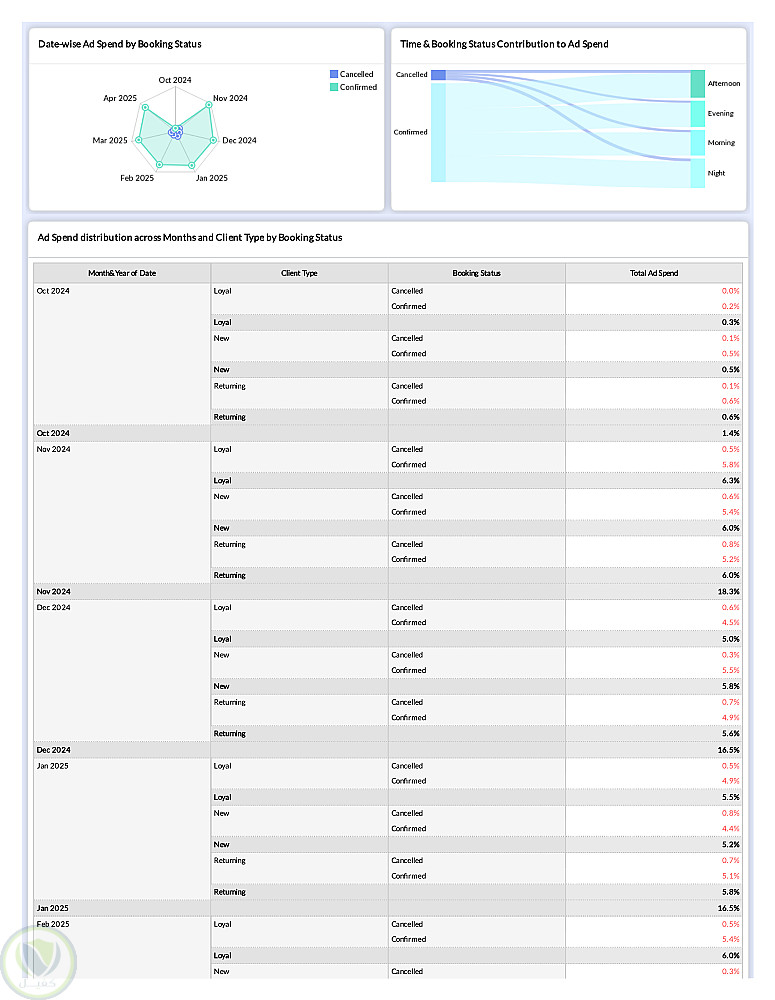 Dashboard متكامل لتحليل الإنفاق الإعلاني يساعد في فهم سلوك الحملات التسويقية وتوزيع الميزانية.