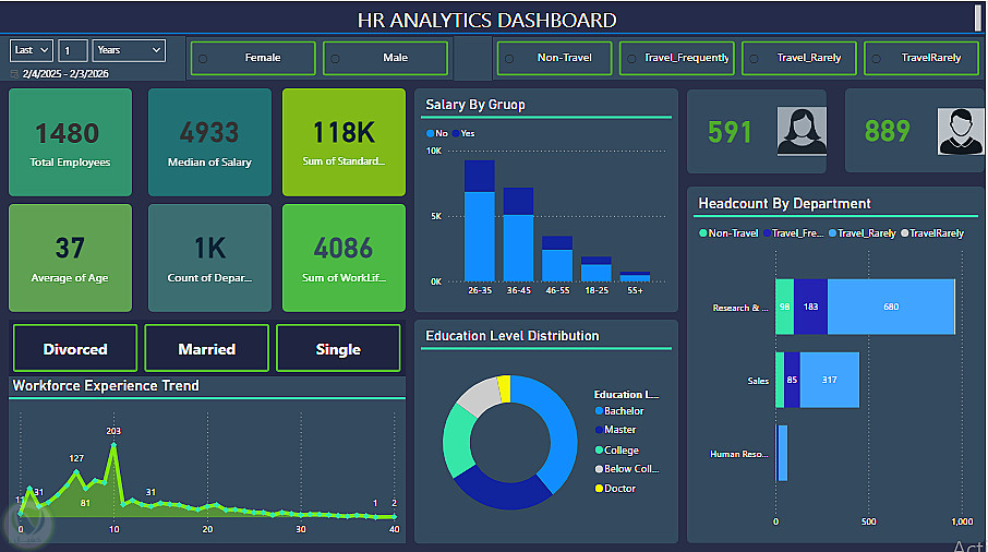 تطوير لوحة تحكم تفاعلية لتحليل بيانات الموارد البشرية | HR Analytics Dashboard