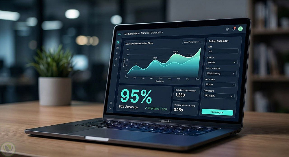 معالجة البيانات: تنظيف السجلات الطبية، معالجة القيم المفقودة، وتوحيد المقاييس لرفع دقة النموذج.
