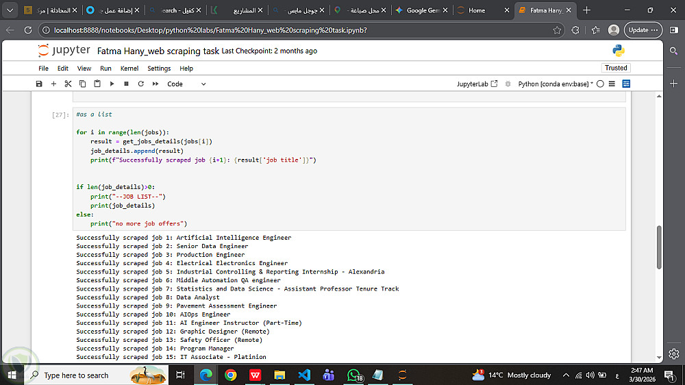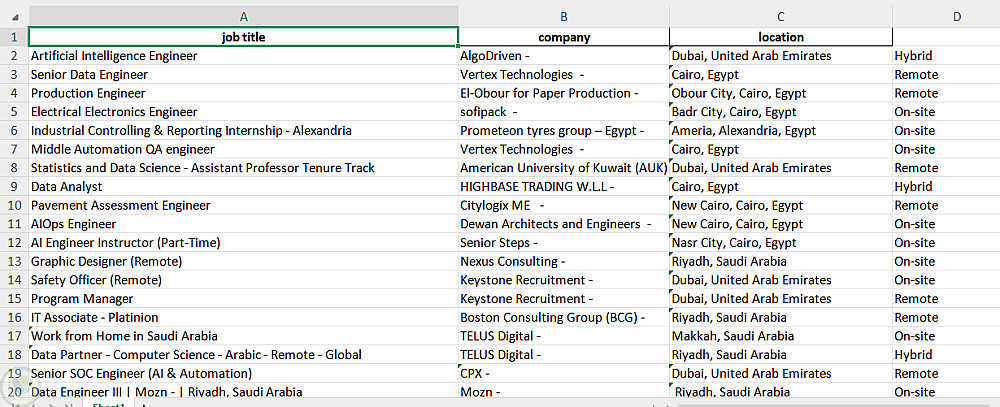أداة استخراج وتحليل بيانات الوظائف (Web Scraping) من موقع Wuzzuf