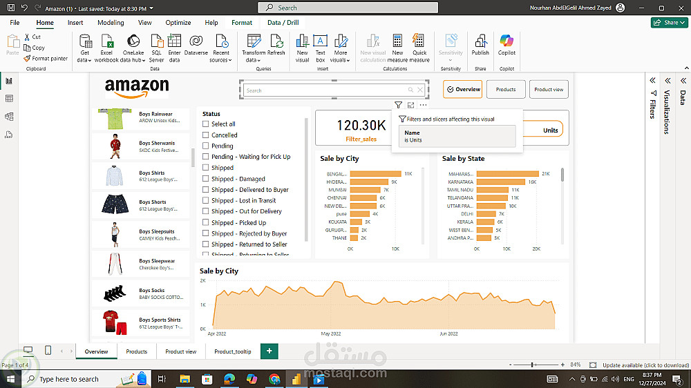 مشروع تحليل مبيعات Amazon (Dashboard احترافي)