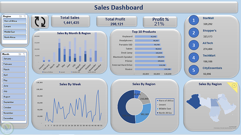 تصميم لوحة بيانات (Dashboard) احترافية وتفاعلية على Excel لتحليل بياناتك.
