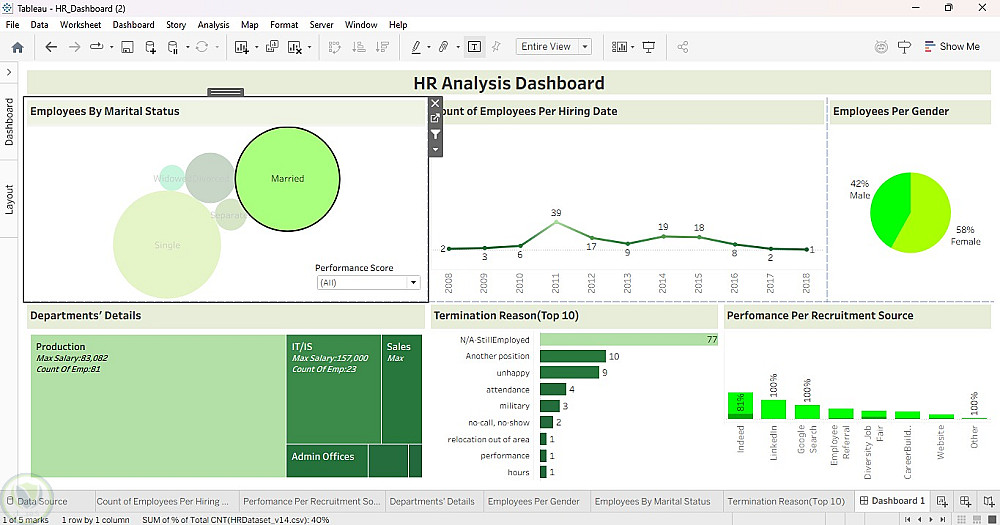 تحليل بيانات الموارد البشرية (HR Analysis Dashboard) باستخدام Tableau