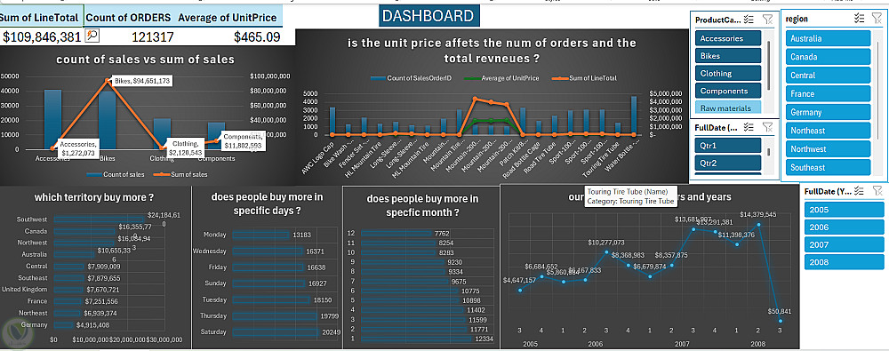 عنوان المشروع: تحليل بيانات مبيعات AdventureWorks وتحويلها لنموذج Star Schema باستخدام Excel