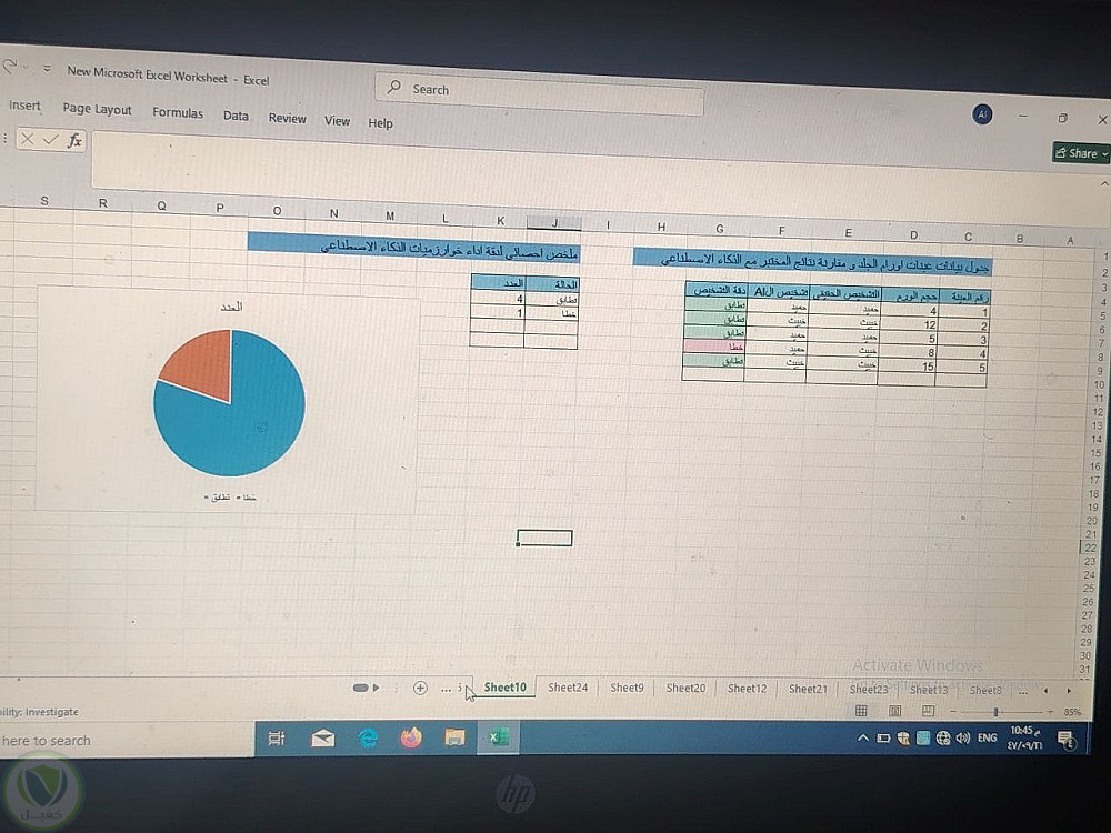 تمثيل البيانات بصرياً (Data Visualization): تصميم مخطط دائري (Pie Chart) يوضح النسبة المئوية لدقة الأداء، مما يسهل فهم النتائج بلمرة واحدة.