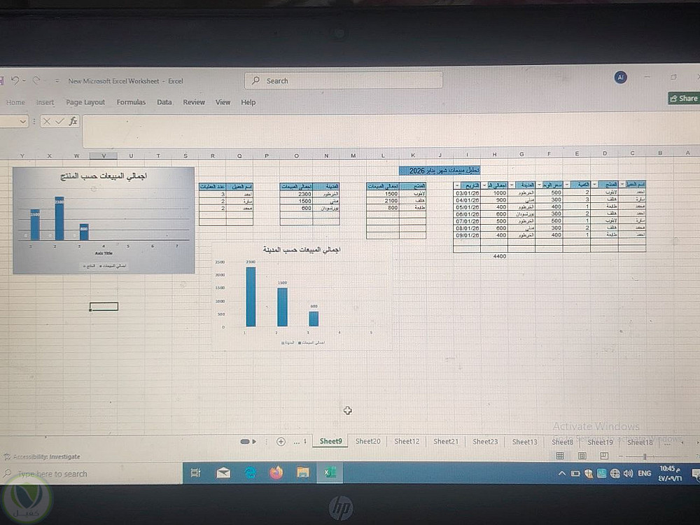 استخدام الجداول المحورية (Pivot Tables): لتلخيص مبيعات كل موظف أو منطقة بشكل ديناميكي.