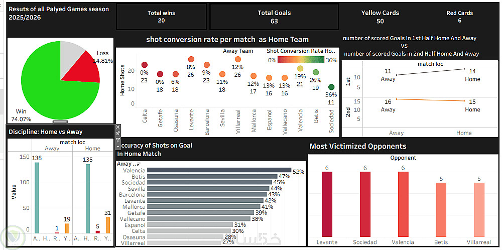 هذا المشروع هو جزء من تحليل بيانات كروية يركز على أداء فريق ريال مدريد في الدوري، بهدف استخراج رؤى دقيقة تساعد في فهم أداء الفريق واتخاذ قرارات مبنية على البيانات ⚽📊