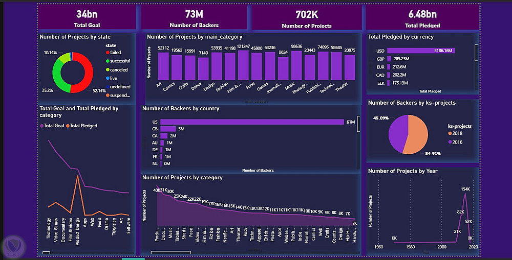 يهدف هذا المشروع إلى تحليل بيانات منصات التمويل الجماعي (Crowdfunding) لفهم سلوك المشاريع والداعمين واستخلاص رؤى تساعد في تحسين فرص نجاح المشاريع 📊🚀
