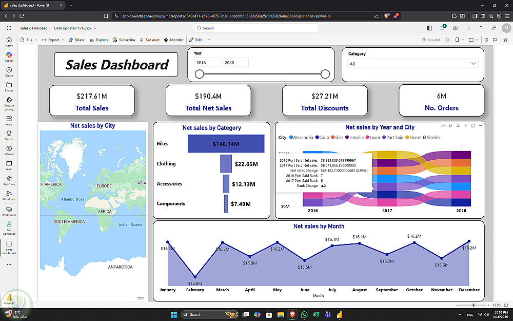 هذا المشروع يمثل نموذج عملي لتحويل البيانات الخام إلى تقارير بصرية واضحة وتفاعلية.