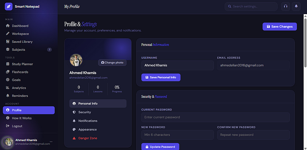 Smart Notepad — منصة متكاملة لإدارة المذاكرة والإنتاجية