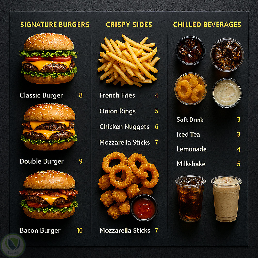 "تصميم منيو وجبات سريعة عصري - Modern Fast Food Menu".