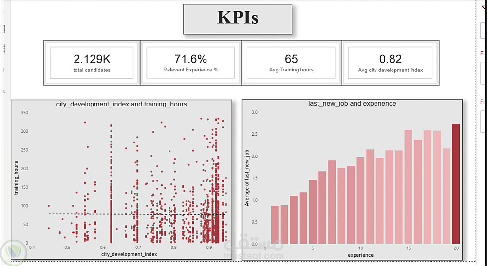 إجمالي عدد المرشحين, نسبة الخبرة ذات الصلة, متوسط ساعات التدريب ,مؤشر تطوير المدن