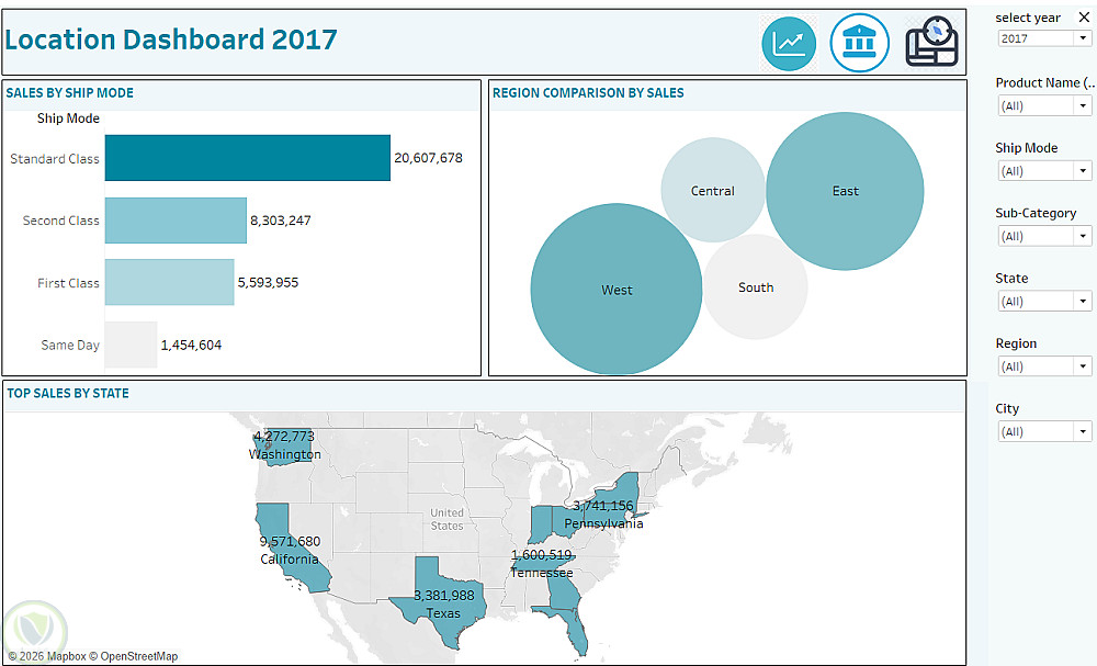 تتضمن اللوحة تحليل الاتجاهات الزمنية وتوقعات المستقبل، تحديد أفضل العملاء والفئات الأكثر ربحية، وتحليل جغرافي باستخدام خرائط تفاعلية، بالإضافة إلى تحليل المنتجات وطرق الشحن لتحديد المنتجات الأكثر كفاءة وربحية.