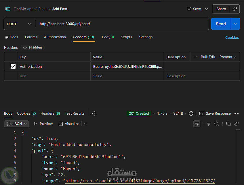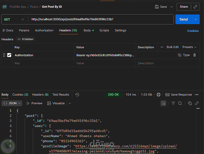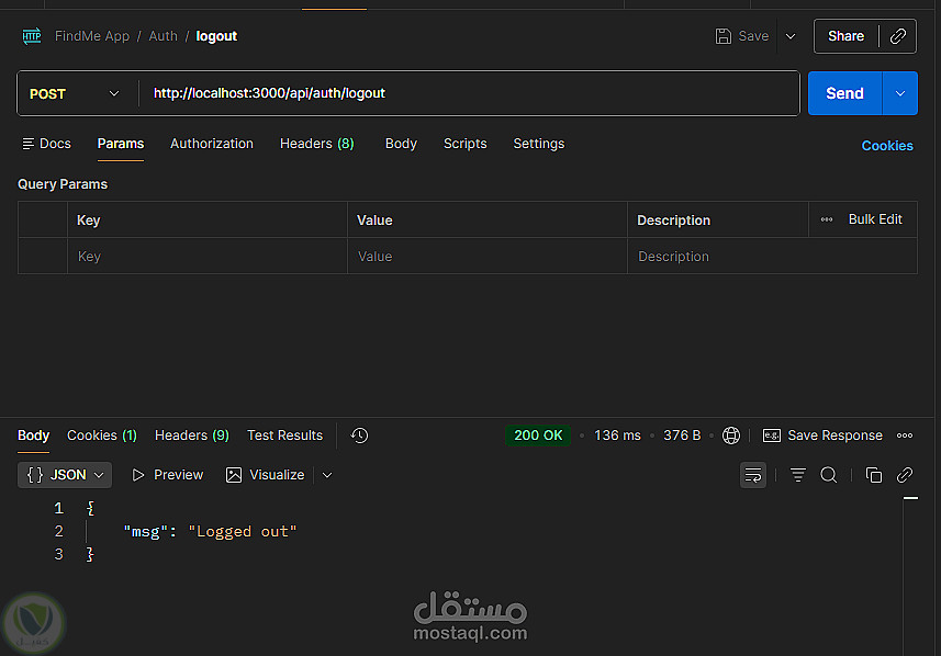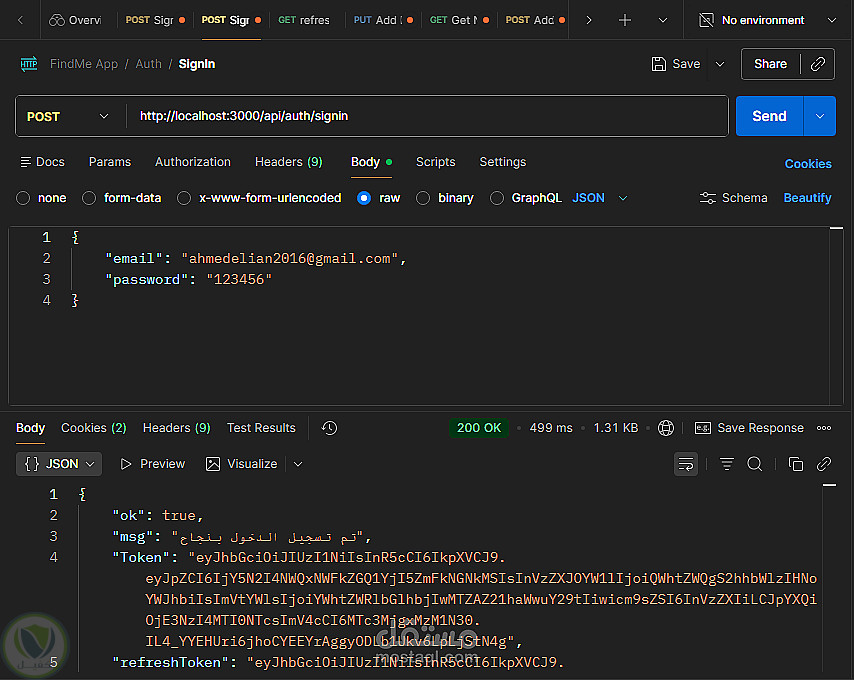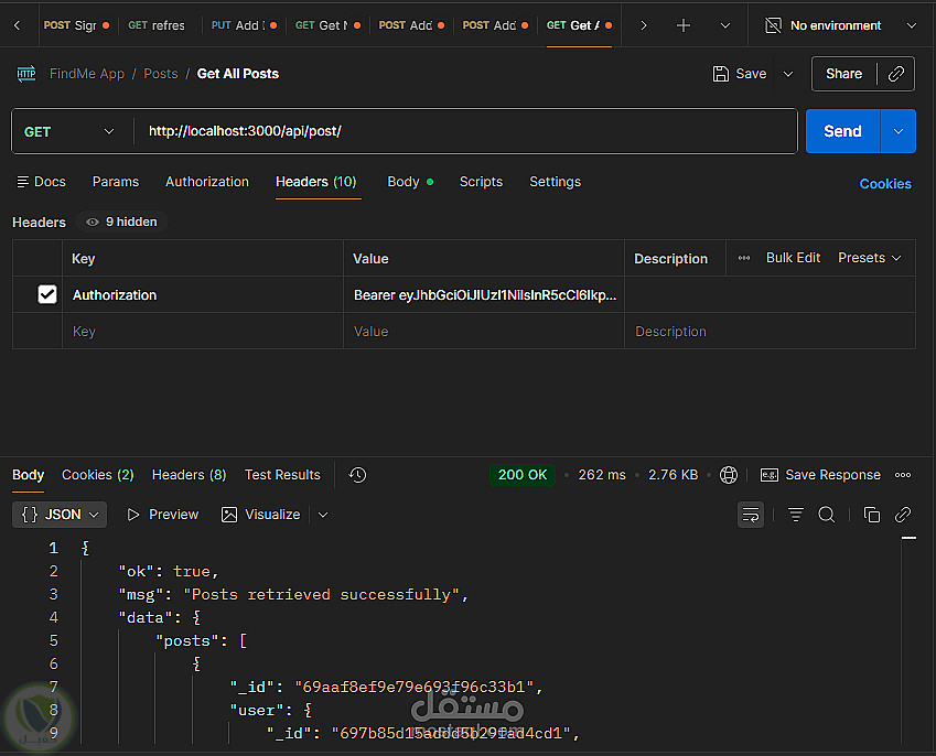 Backend متكامل لتطبيق مجتمعي يتضمن Auth شامل Signup Signin Refresh Logout مع دعم OTP و FaceBook Login بالإضافة لإدارة المستخدم والبوستات والتعليقات والإشعارات والشات تم بناء REST APIs منظمة وقابلة للتوسع مع تأمين باستخدام JWT وربط MongoDB