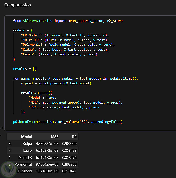 تم تجربة ومقارنة عدة نماذج Regression مختلفة مثل: