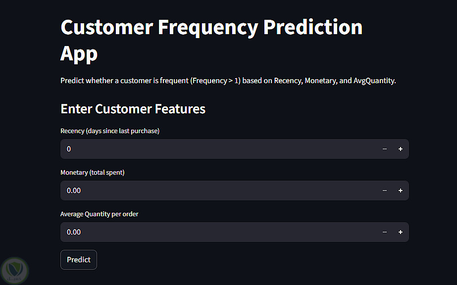 تم تدريب نموذج الشبكة العصبية باستخدام مكتبة TensorFlow / Keras لتحليل هذه الخصائص والتنبؤ باحتمالية أن يصبح العميل عميلاً متكرراً. كما قمت بتطوير واجهة تطبيق بسيطة باستخدام Streamlit تسمح بإدخال بيانات العميل والحصول على توقع فوري حول احتمالية عودته للشراء.