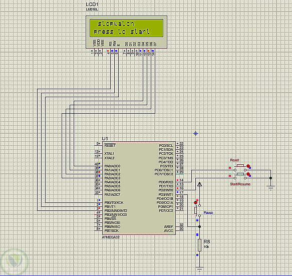 ساعة إيقاف باستخدام المتحكم الدقيق ATmega32