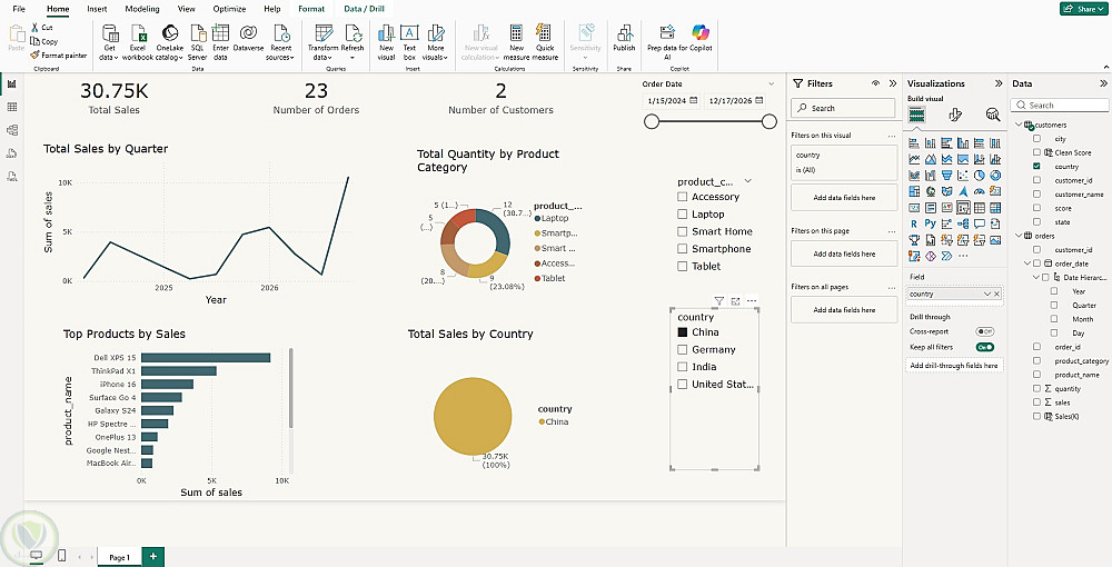 لوحة تحكم لتحليل بيانات متجر اليكترونيات باستخدام Power Bi