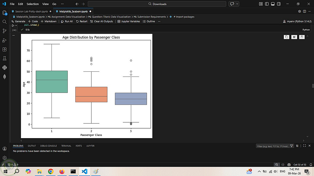 1- عرض احصائيات أعمار الركاب الكلي و المقسم بدرجة التذكرة.2