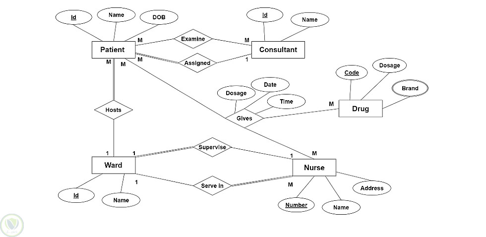 هيكلة العلاقة بين المرضى والأدوية (Drugs) مع تحديد الجرعات والمواعيد.