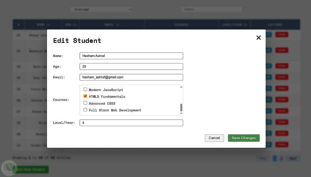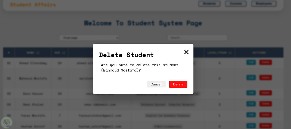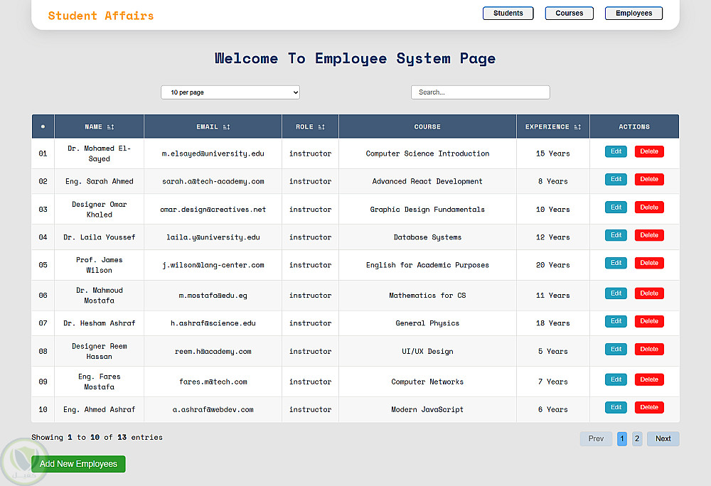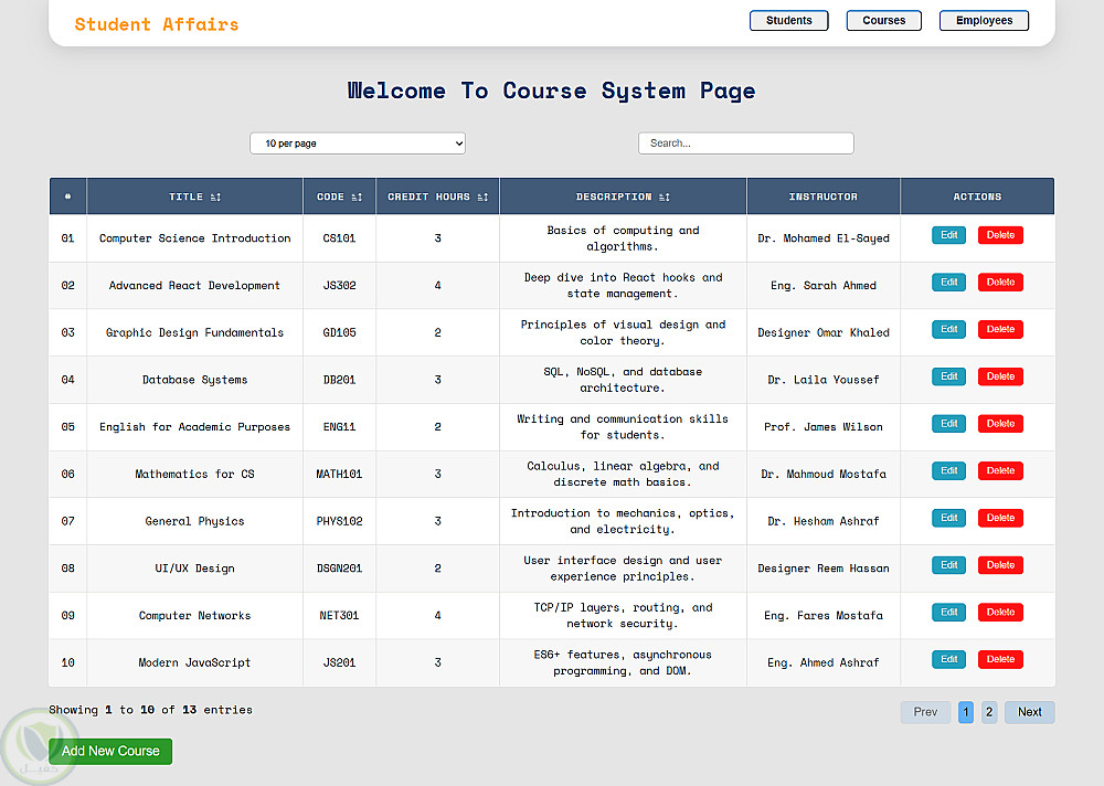 - عمليات CRUD كاملة للطلاب، المقررات، والموظفين.