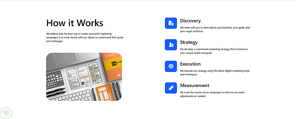 - **كيف نعمل (How It Works): شرح خطوات الخدمات بشكل واضح.