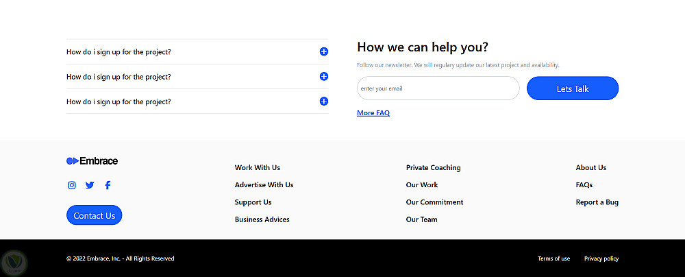 - **التواصل (Contact / Footer):** قسم للتواصل مع روابط الشبكات الاجتماعية.