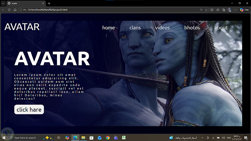 تصميم الواجهه الاماميه لموقع AVATAR