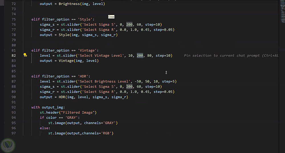 كتابة الكود باستخدام Python + OpenCV ، مع تحسين الأداء لتحديث الصور بشكل لحظي أثناء تعديل المعاملات.
