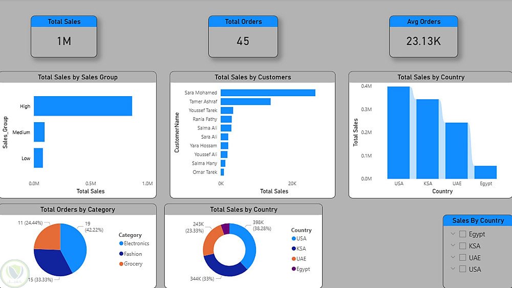 تحليل المبيعات (Retail Dashboard): تتبع إجمالي المبيعات ($1.2M) والأرباح ($578K) مع تفصيل الأداء حسب فئة المنتج (Electronics, Home Appliances, etc).