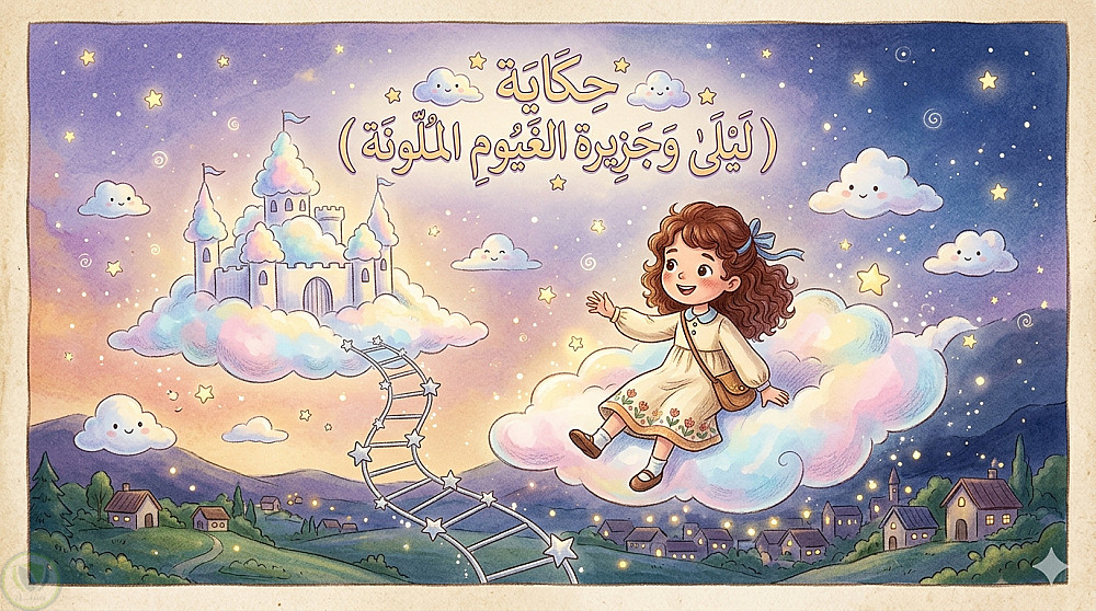 تأليف وقصة أطفال مصورة - ليلى في جزيرة الغيوم الملونة.