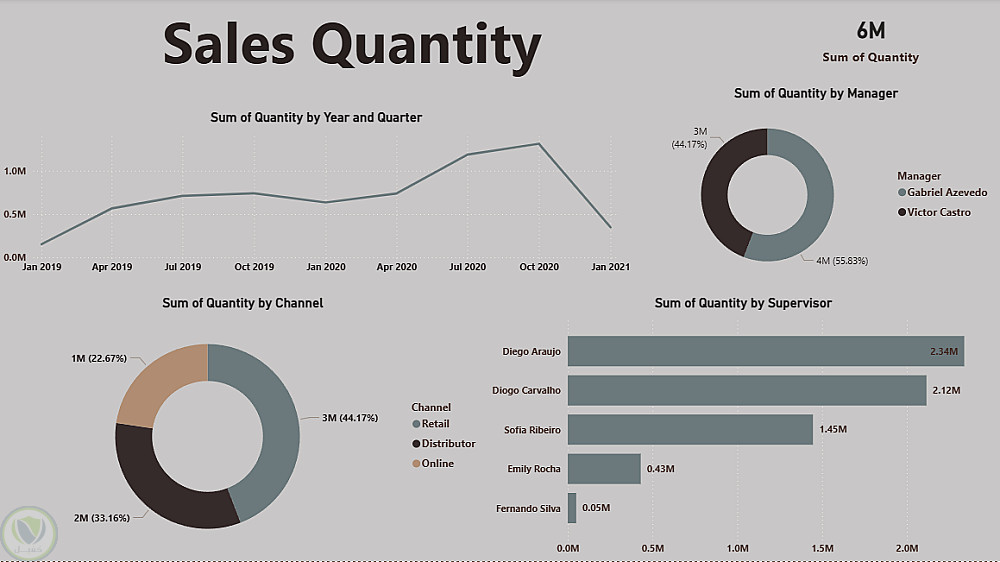 "تصميم وتنفيذ لوحة تحكم تفاعلية (Interactive Dashboard) باستخدام برنامج Power BI، تهدف إلى تحليل معمق لبيانات مبيعات الشركة من حيث الكميات المباعة (Sales Quantity) خلال الفترة من يناير 2019 إلى يناير 2021.