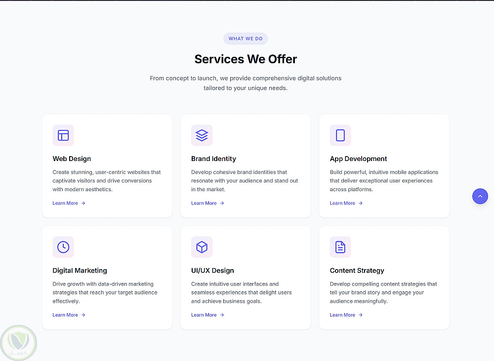تم تطوير Design Conversion Website حديث ومتجاوب بالكامل لعرض خدمات وكالة أو مشروع تصميم بشكل احترافي وجذاب. يعتمد على HTML وCSS وJavaScript مع كود نظيف ومنظم وسهل التعديل والتخصيص.