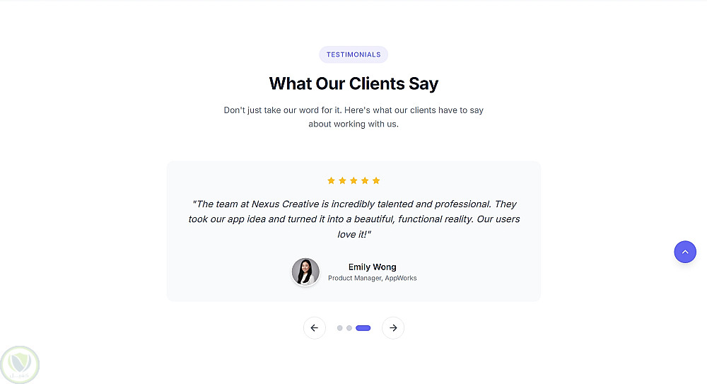 Testimonial Slider يدعم الأسهم والنقاط واللمس