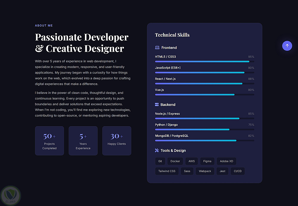 قمت بتطوير موقع Portfolio احترافي لعرض الأعمال والخدمات بشكل عصري وجذاب. يعتمد على تصميم حديث وتجربة مستخدم تفاعلية مع التركيز على الأداء وسهولة التخصيص. تم بناء المشروع باستخدام HTML وCSS وJavaScript بكود نظيف ومنظم وفق أفضل ممارسات تطوير الواجهات الأمامية. الموقع مصمم Dark Theme مع تأثيرات حركية تضيف طابعًا احترافيًا. الصفحة متجاوبة بالكامل وتعمل بكفاءة على الموبايل، التابلت، والكمبيوتر.