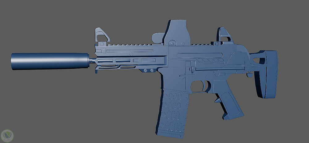 تم التركيز على إبراز التفاصيل الميكانيكية والشكل الواقعي للسلاح مع الحفاظ على نظافة الـTopology ودقة النمذجة.
