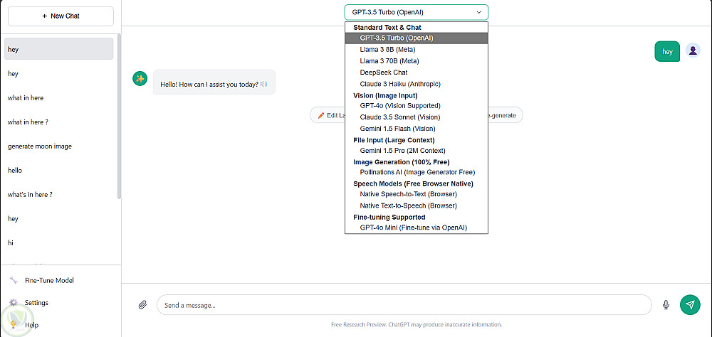 تشمل المنصة إمكانية تخصيص النماذج وتحسين أدائها وفق احتياجات المستخدم (Fine-Tuning)، بالإضافة إلى حفظ سجل المحادثات وإدارته بطريقة منظمة، مما يساهم في تحسين تجربة الاستخدام واستمرارية العمل.