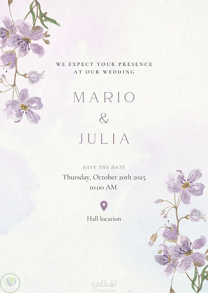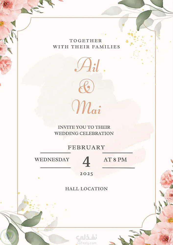 يمكن تعديل التصميم حسب طلب العميل وإضافة الأسماء والتواريخ والمكان بسهولة.