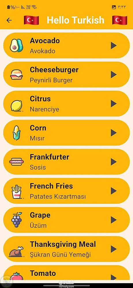 • نطق صوتي للكلمة بالتركي لتسهيل التعلم
