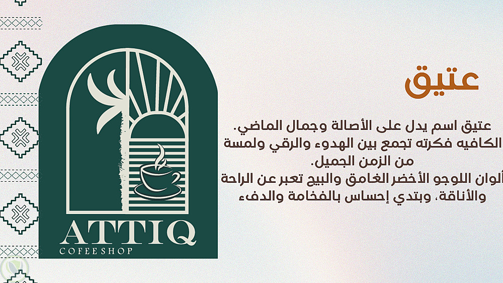 الفكرة: بدأت من اسم "عَتيق" الذي يعبر عن الجودة والأصالة.