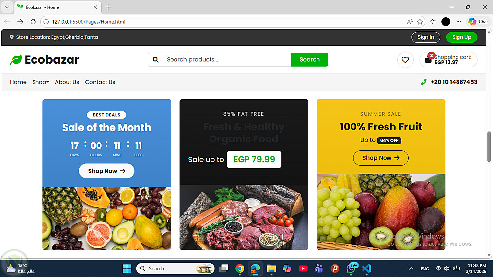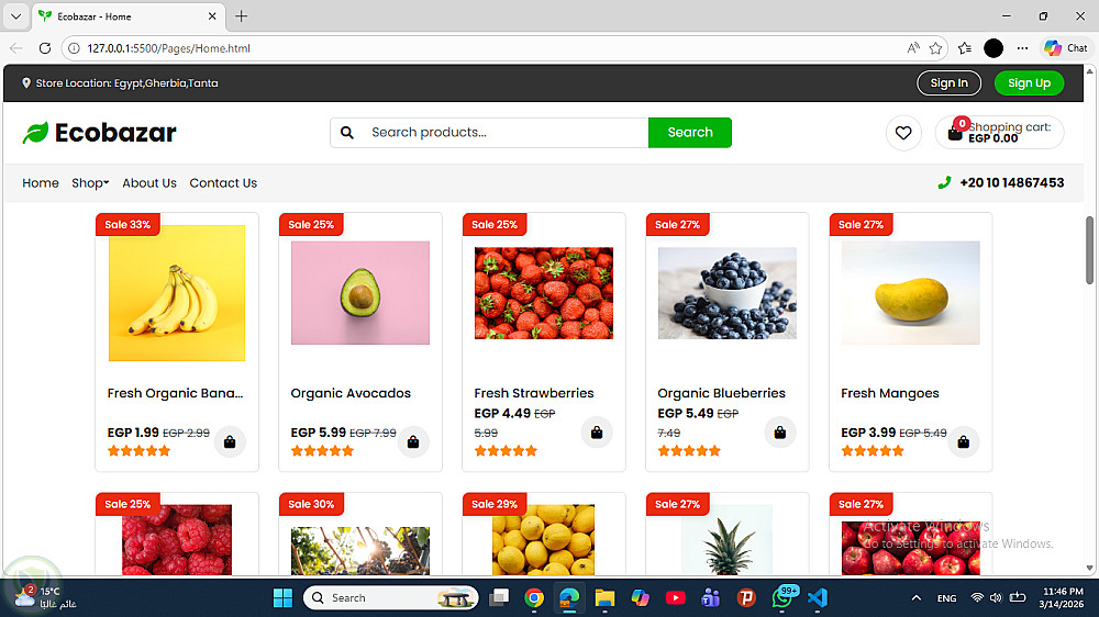 طبيق متجر إلكتروني (E-Commerce) يتيح للمستخدمين تصفح المنتجات، إضافة المنتجات إلى سلة المشتريات، وإتمام عملية الشراء.