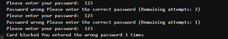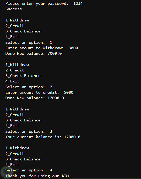 تطبيق برمجي تفاعلي مكتوب بلغة بايثون (Python) يحاكي الوظائف الأساسية لماكينة الصراف الآلي. يركز المشروع على تقديم تجربة استخدام سلسة عبر شاشة الأوامر (CLI) مع تطبيق منطق برمجي سليم لإدارة العمليات المالية.