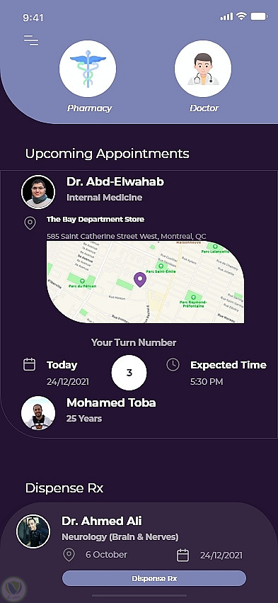💊 بعد الكشف، يستلم المريض الروشتة داخل التطبيق، مع إمكانية العثور على أقرب صيدلية.