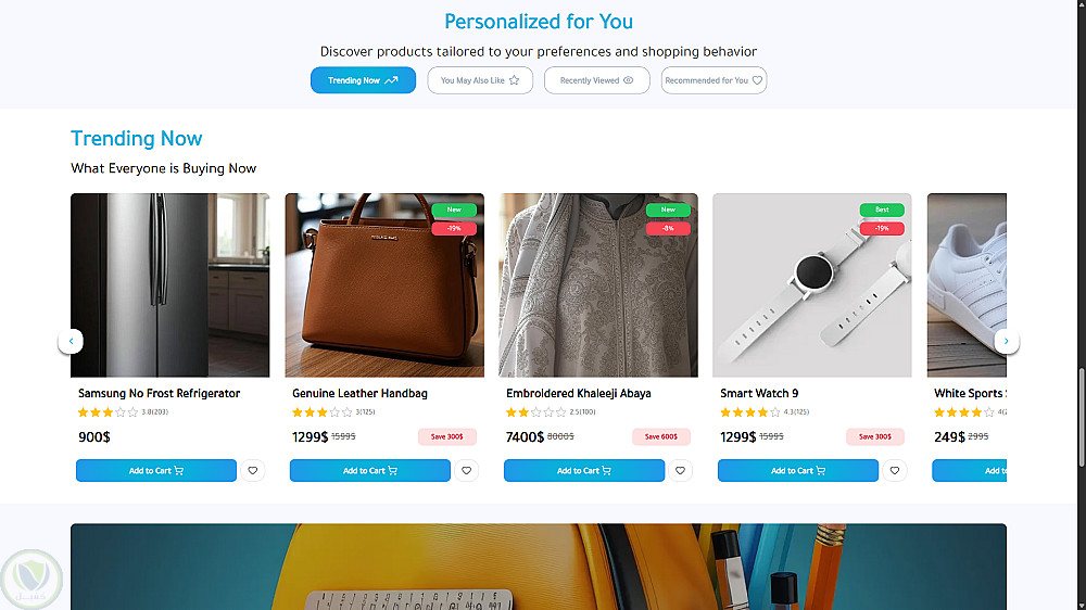 إمكانية إضافة المنتجات إلى سلة المشتريات مع تحديث لحظي.