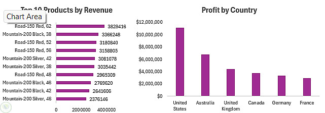 يتضمن الداشبورد تحليلات بصرية لدراسة اتجاهات المبيعات عبر الزمن، وتوزيع الإيرادات حسب الدول، بالإضافة إلى تحليل العملاء وأفضل المنتجات أداءً. كما يتيح استخدام فلاتر تفاعلية (Slicers) لتسهيل استكشاف البيانات واتخاذ قرارات مبنية على البيانات.